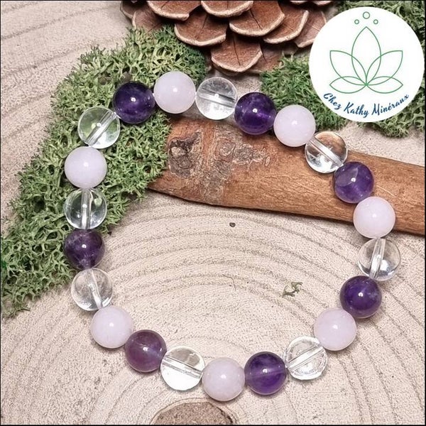 Bracelet Améthyste - Quartz rose - Cristal de roche