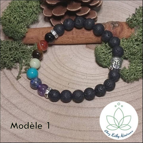 Bracelet 7 chakras et pierre de lave - Modèle 1